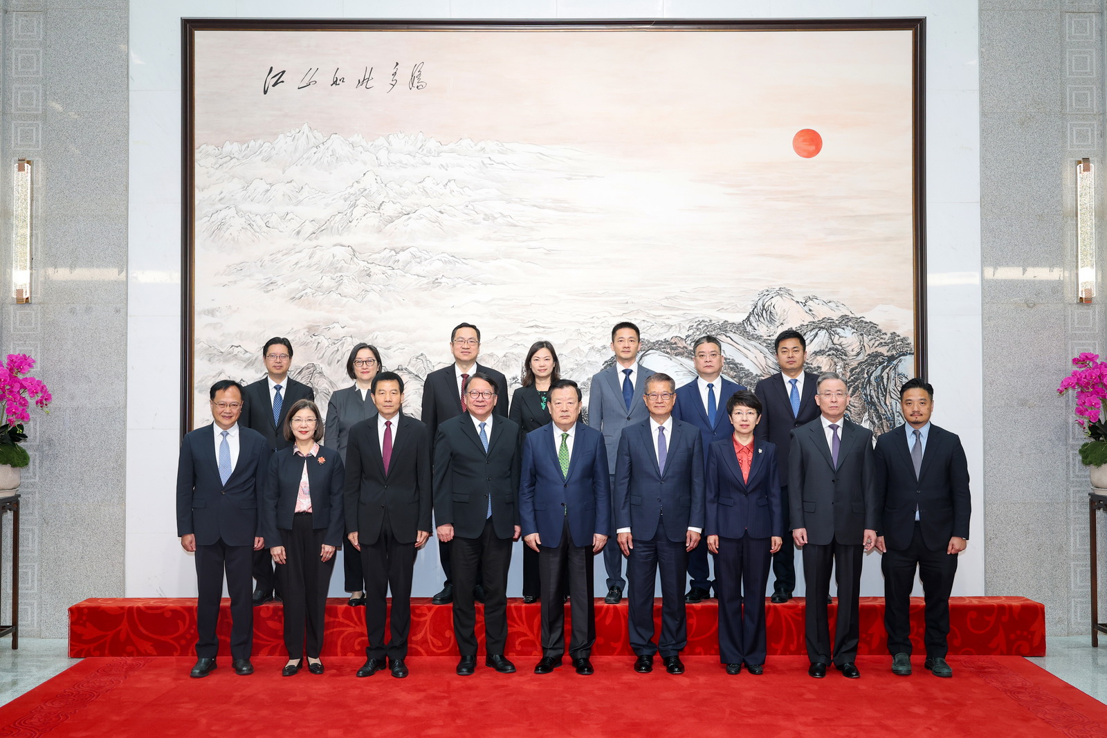 4月16日上午,中央港澳工作办公室主任、国务院港澳事务办公室主任夏宝龙在北京会见香港特区政府政务司司长陈国基、财政司司长陈茂波一行,就香港主动对接国家“十五五”规划、融入和服务国家发展大局座谈交流。