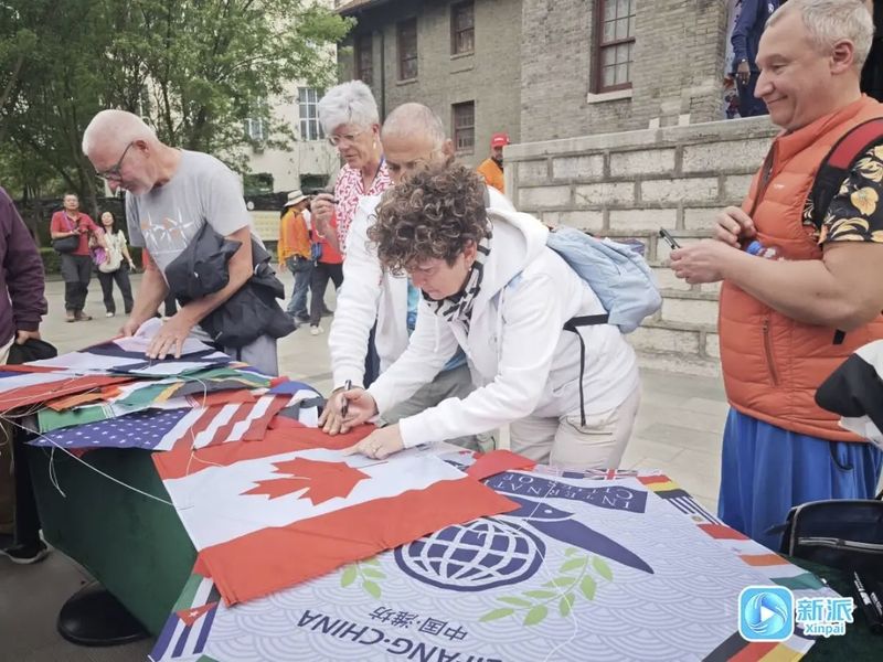 第42届潍坊国际风筝会举办期间,国际风筝运动员参加“和平之鸢 铭记历史”国际风筝运动员和平交流活动。图/新派新闻