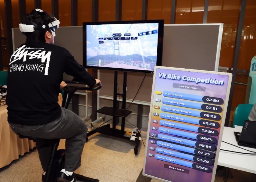 是次活动内容丰富,动静皆备,让参加者可按个人需要选择合适方式放松身心。其中,结合科技与运动元素的虚拟实境单车体验,参加者可挑战全长1.5公里的青马大桥竞赛路线,一展实力;亦可悠闲骑行,虚拟漫游日本富士山、法国艾菲尔铁塔等全球著名景点,以沉浸式视觉体验“眼睛旅行”。