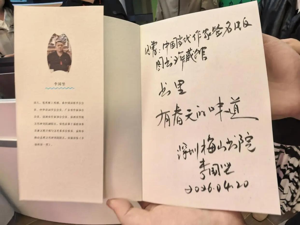 香港新闻社4月23日报道 在第31个“4・23世界读书日”、2026年“全民阅读活动周”到来之际,深圳龙岗区作协副主席、梅山书院院长李国坚于4月20日向湖南益阳清溪村“中国当代作家签名版图书珍藏馆”捐赠诗集。中华诗词学会高校工作委员会副主任、岭南儒商诗会会长贺贤赟主持了捐赠仪式。