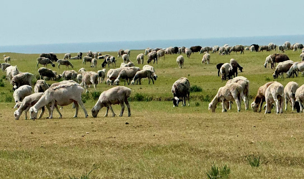 望着窗外一望无际的大草原和一群又一群牛羊,我们心旷神怡。