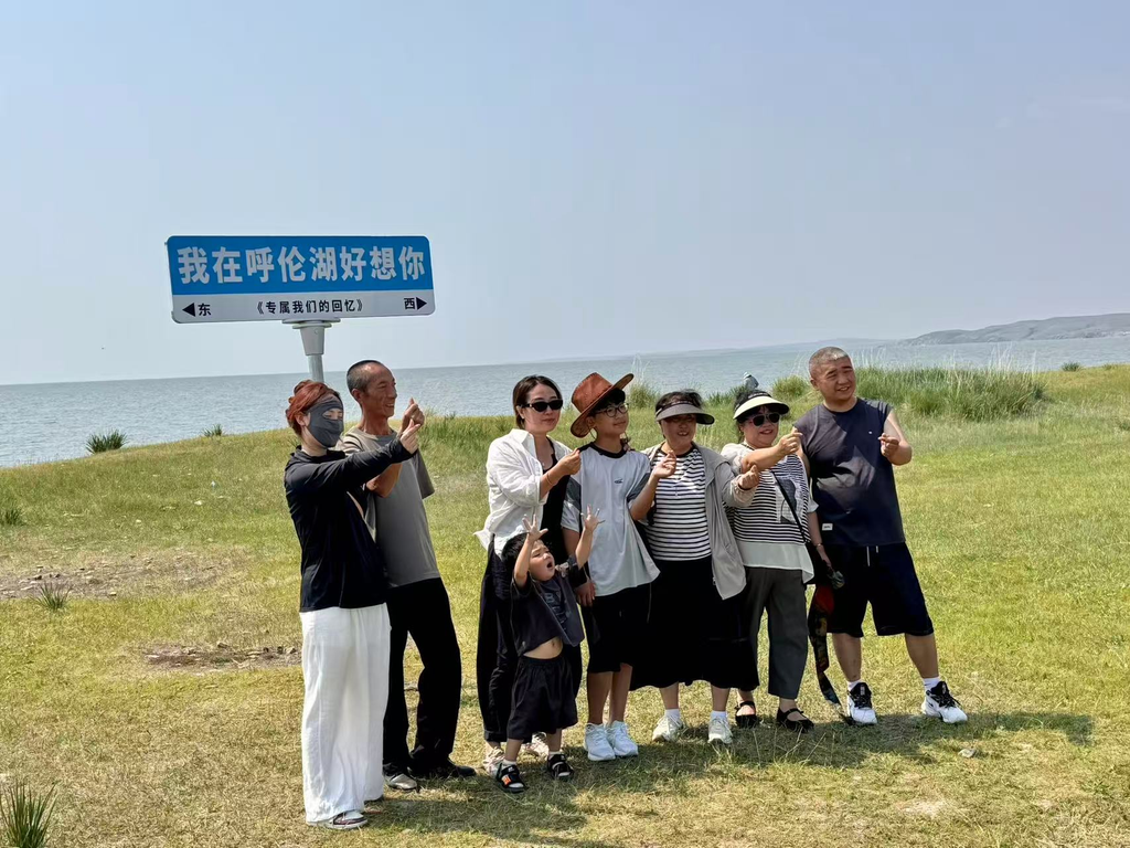 车轮滚滚,我们穿越呼伦贝尔大草原,途经额尔古纳国家公园、奥洛契庄园、室韦魅力名镇、哈萨尔游牧部落等景区,滑草、骑马、逛界河,玩的十分爽快。抵达以“北疆明珠”著称的满洲里后,在波光粼粼的呼伦湖畔,我为大叔拍了个全家福。