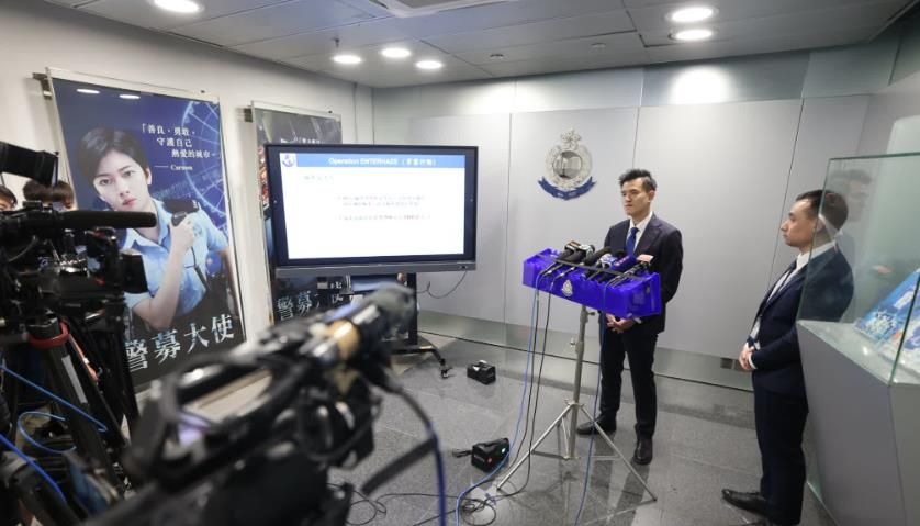 警方讲述“穿云行动”反诈骗及反洗黑钱行动详情。香港文汇报记者刘友光摄