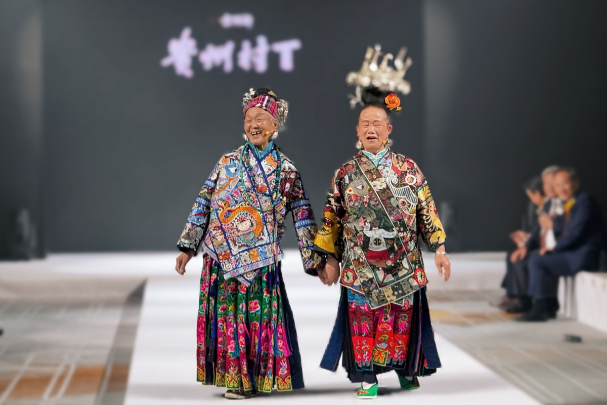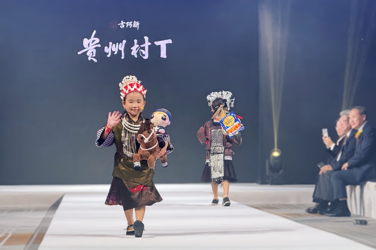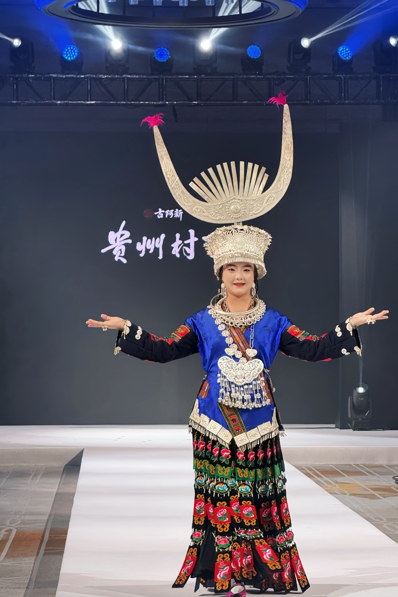 走秀服装深度融合了苗绣、蜡染、银饰等非遗元素,通过现代时尚设计让传统技艺“活”起来。